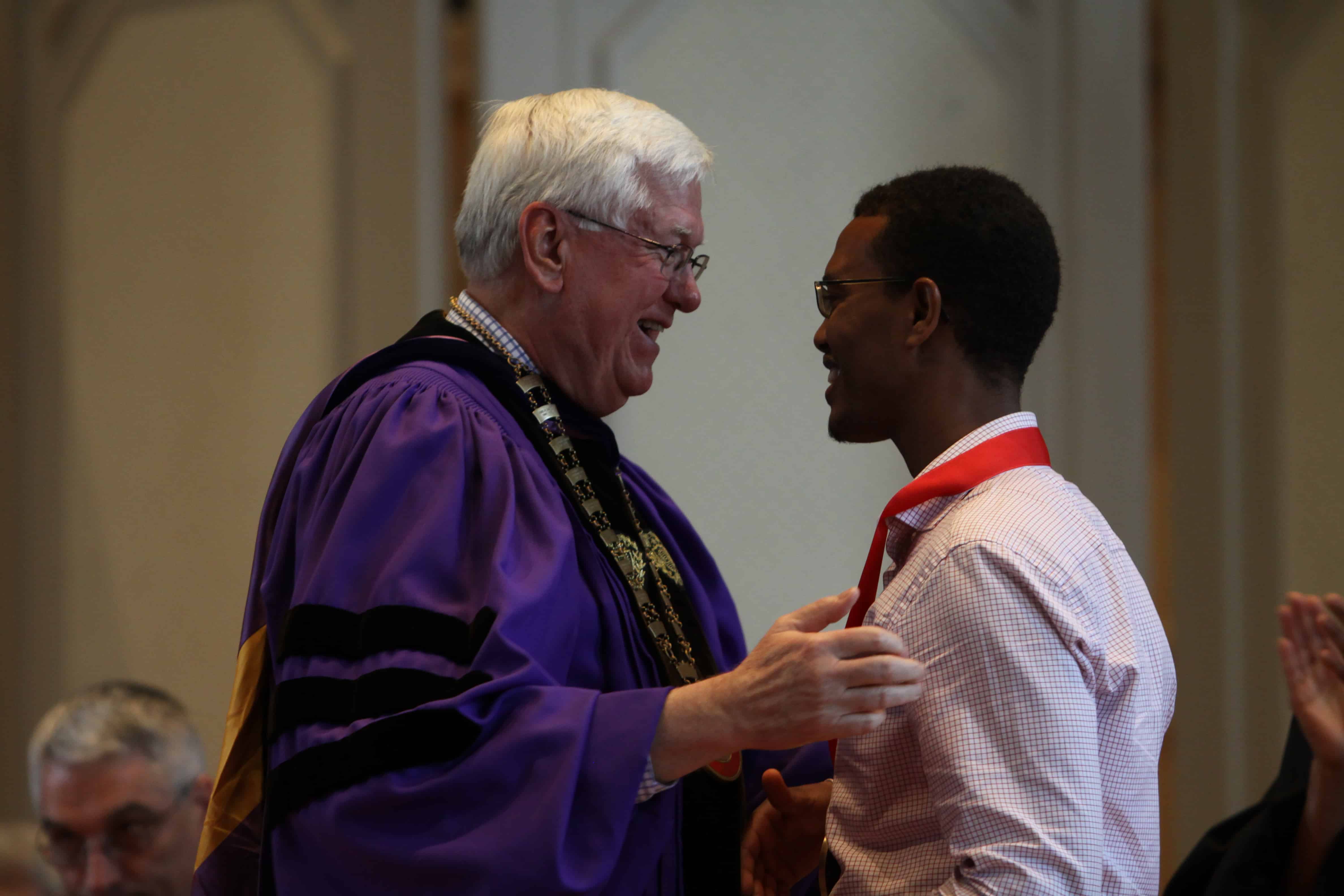 University President Dale T. Knobel’s opening remarks invited those present to “celebrate the mutuality of the deepest learning.” Senior Jolyn Tsai next played a piano solo by Debussy, “La puerta del vino,” which provided a melodic example of the deep learning President Knobel mentioned.